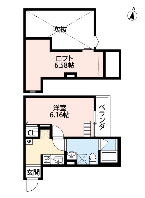 洋室6.16帖、ロフト6.58帖